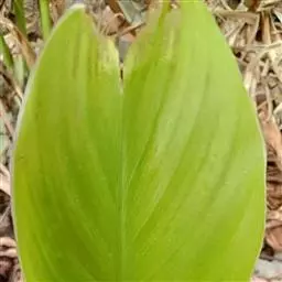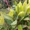 金脉美人蕉叶片淡黄色,叶脉绿化,叶缘具红边,全缘,大花美人蕉之变种