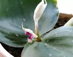 蕉芋根茎发达,多分枝,块状;茎粗壮,高可达3米。叶片长圆形或卵状长圆形,长30-60 厘米,宽10-20厘米,叶面绿色,边绿或背面紫色;叶柄短;叶鞘边缘紫色。总状花序单生或分叉,少花,被蜡质粉霜,基部有阔鞘;花单生或2朵聚生,小苞片卵形,长8毫米,淡紫色;萼片披针形,长约1.5厘米,淡绿而染紫;花冠管杏黄色,长约1.5厘米,花冠裂片杏黄而顶端染紫,披针形,长约4厘米,直立;外轮退化雄蕊2(-3)枚,倒披针形,长约5.5厘米,宽约1厘米,红色,基部杏黄,直立,其中1枚微凹;唇瓣披针形,长4.5厘米,卷曲,顶端2裂,上部红色,基部杏黄;发育雄蕊披针形,长4.2厘米,杏黄而染红,花药室长9毫米;子房圆球形,直径6毫米,绿色,密被小疣状突起。花柱狭带形,长6厘米(其中基部约有1厘米长与退化雄蕊管连合),杏黄色。花期
