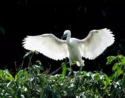雪鹭:全身洁白的羽毛,颈背有丝状蓑羽。有一双亭亭玉立黄色长腿和一个黑色的鸟喙。在繁殖季节,鼻孔和眼…