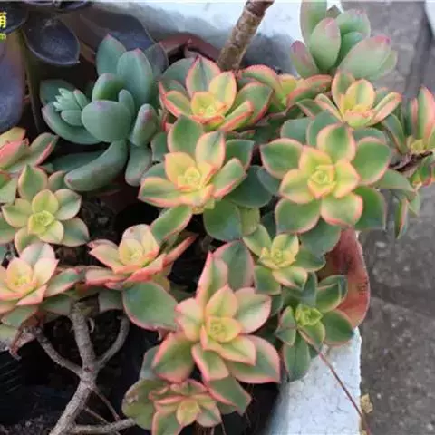 爱染锦,别名黄笠姬锦、墨染,景天科莲花掌属多肉植物,矮小灌木状植株。…
