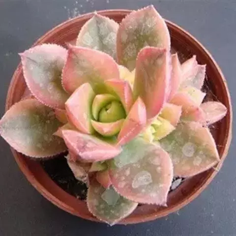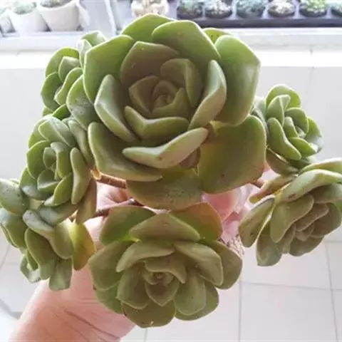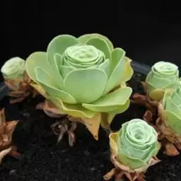 戴冠曲 景天科莲花掌属多肉植物,为亚灌木分枝多,叶片生长在茎端和分枝顶端集和成莲座叶盘,叶片倒卵形,植株容易群生。