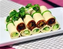 腐皮卷素菜是一道广东省的传统名菜,属于粤菜系。把香菇用清水浸软,去蒂,切细丝,胡萝卜,榨菜分别洗净…