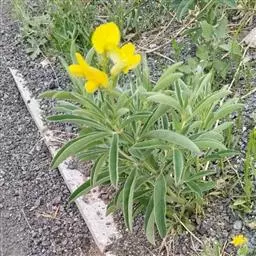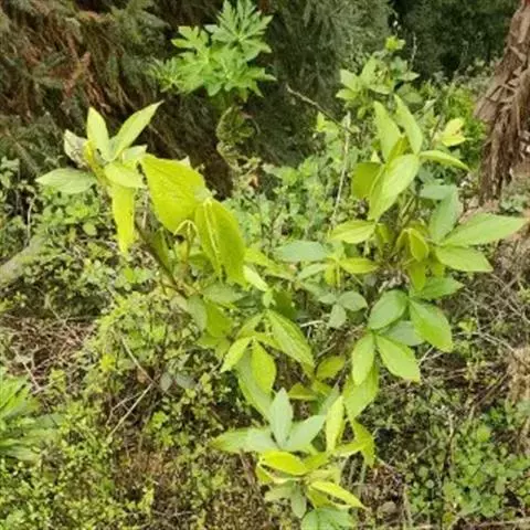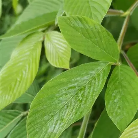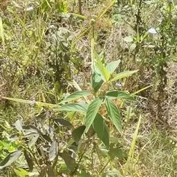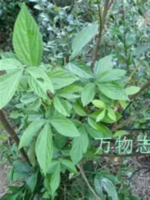 直立或披散亚灌木。幼枝三棱柱状,密被灰褐色短柔毛。叶具指状3小叶;托叶线状披针形,长约0.6-1厘米,有纵纹,被毛,先端细尖,宿存;叶柄长2-2.5厘米;小叶厚纸质,长椭圆形或卵状披针形,偏斜长4-7(-9)厘米,宽1.7-3厘米,先端钝,有时有小凸尖,基部圆形,上面被疏短柔毛,背面密被灰褐色柔毛;基出脉3,侧脉及网脉在上面多少凹陷,下面凸起,侧生小叶略小;小叶柄极短,密被短柔毛。