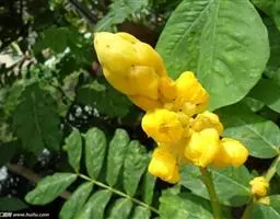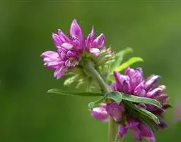 总状花序腋生,通常长2-2.5厘米,各部密被灰褐色至灰白色柔毛;苞片狭卵状披针形;花密生,具短梗;萼裂片披针形,远较萼管长,被灰白色长伏毛;花冠紫红色,约与花萼等长,旗瓣长圆形,基部具极短瓣柄,两侧具不明显的耳,翼瓣镰状,基部具瓣柄及一侧具微耳,龙骨瓣椭圆状,略弯,基部具瓣柄,一侧具1尖耳;雄蕊二体;子房被毛。荚果椭圆状,长7-8毫米,宽约5毫米,被短柔毛;种子2颗,近圆球形,黑色。花、果期夏秋季。