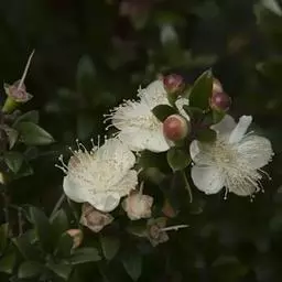 香桃木是桃金娘科香桃木属植物。枝四棱,幼嫩部分稍被腺毛;叶芳香,革质,叶片卵形至披针形;花芳香,…