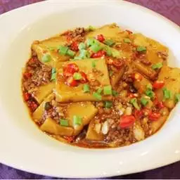 麻婆豆腐,是四川地区传统名菜之一,属于川菜,主料为:豆腐,辅料为:蒜苗、牛肉沫,…