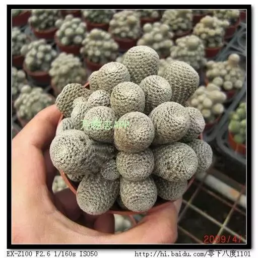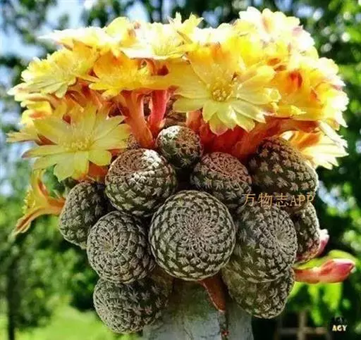 一般生长2-3年的球体上,都有聚集簇生的子球,叠垒成群,故而获得“子孙球”的美名。鲜艳夺目的花朵,缀满球顶,形成壮丽的花冠,因而又称为“王冠球”。