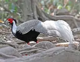 红腹角雉栖息于海拔1000-3500m的山地森林、灌丛、竹林等不同植被类型中,其中尤以1500-2500m的常绿 红腹角雉 阔叶林和针阔叶混交林最为喜欢,有时也上到海拔3500m左右的高山灌丛,甚至裸岩地带活动。