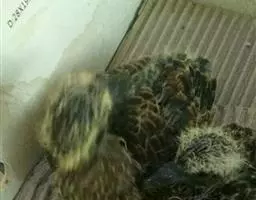(7)暖雏 雏鸟孵出后,雌鸟两翅微张,身体卧伏在雏鸟和巢上。较孵卵时背部更加高耸,胸部羽毛更加蓬松.体姿与孵卵比较,背部更显隆起,双翅自然下垂,尾部常伸出巢外。