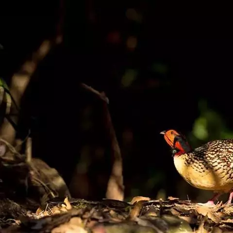 红腹角雉喜欢居住在有长流水的沟谷、山涧及较潮湿的悬崖下的原始森林中,在海拔1000—3500米之间均有分布。 主要以乔木、灌木、竹以及草本植物和蕨类植物的嫩叶、幼芽、嫩枝、种子为食。主要分布于东南亚地区,包括中国南部及印度等地。该物种属于国家二级保护动物,并被列入世界濒危鸟类名录N级。