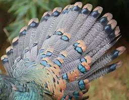 此外,在它的项下还生有一块图案奇特的肉裙,色彩绚丽而富于变幻,两边分别有八个镶着白边的鲜红色斑块,中间在黑色的衬底上散布着许多天蓝色的斑点,有人说这些斑点很象草书的“寿”字,所以又称它为“寿鸡”,视为长寿和好运的象征。