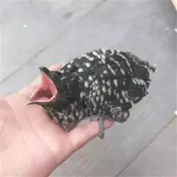 幼鸟体色较淡,且缺少光泽,头、背、翅上覆羽和胸部具白色点斑和端斑。尾羽和尾下覆羽更多白色。