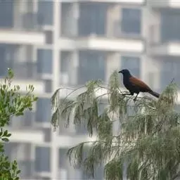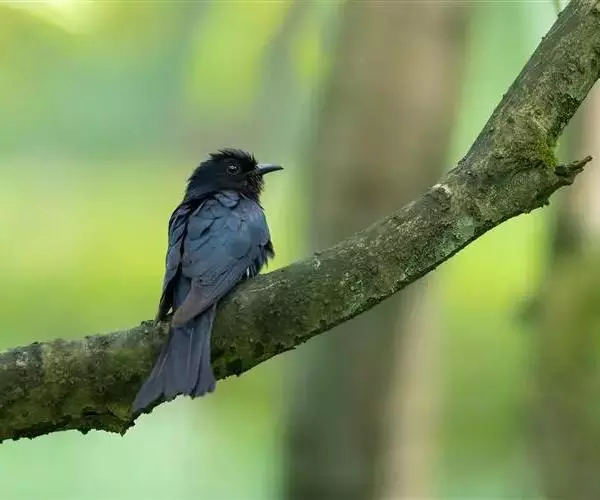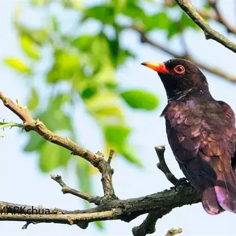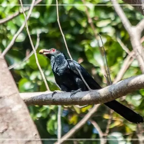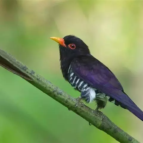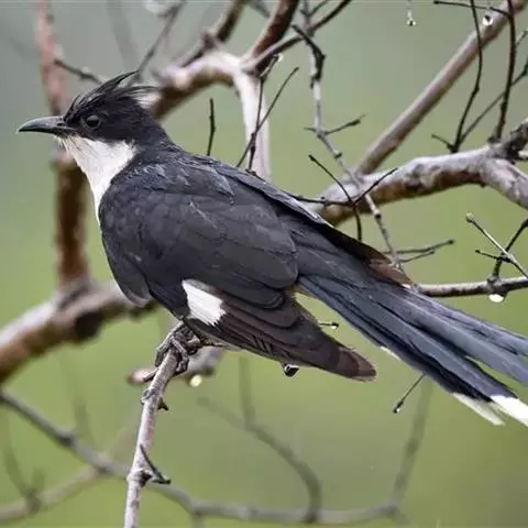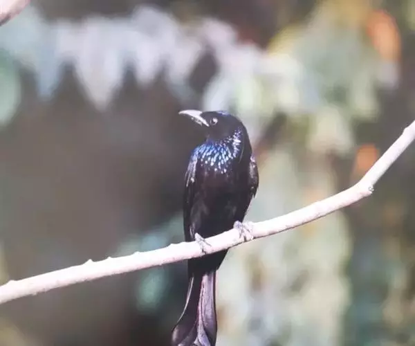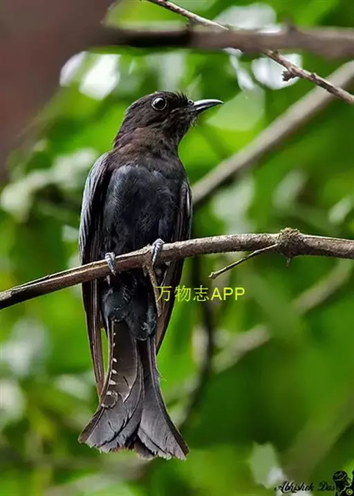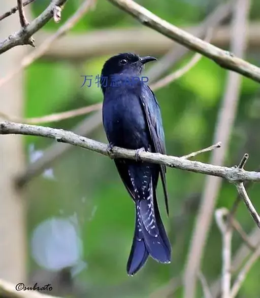 乌鹃(学名:Surniculus lugubris):是杜鹃科、乌鹃属的小型鸟类,体长23-28厘米,通体黑色,尾呈浅叉状,尾下覆羽和外侧尾羽具白色横斑,在黑色的尾部极为醒目。下体黑色,微带蓝色或辉绿色。虹膜褐色或绯红色,嘴黑色,脚灰蓝色。