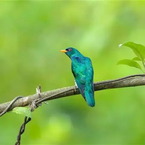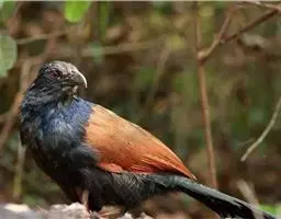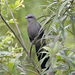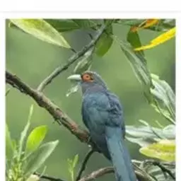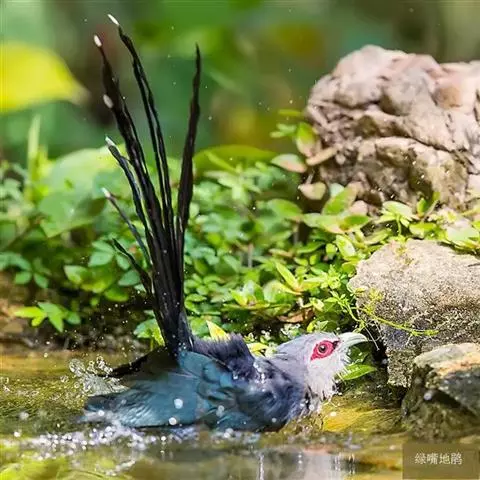 绿嘴地鹃:体形似小鸦鹃,但羽色大致绿灰;嘴绿色,头侧眼的周围有一裸区;后爪弯曲。虹膜赤红色,…