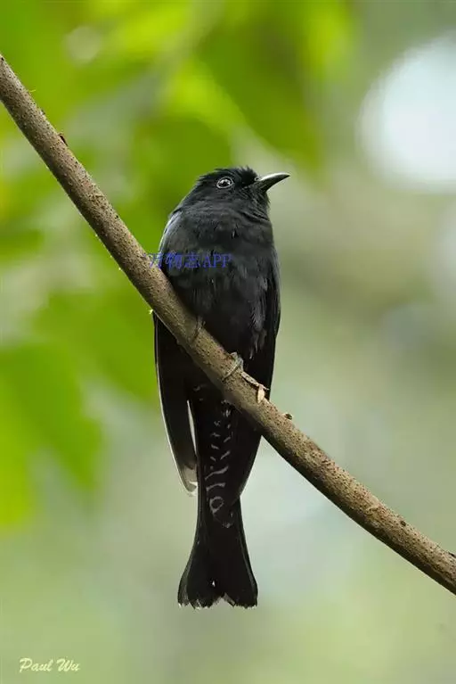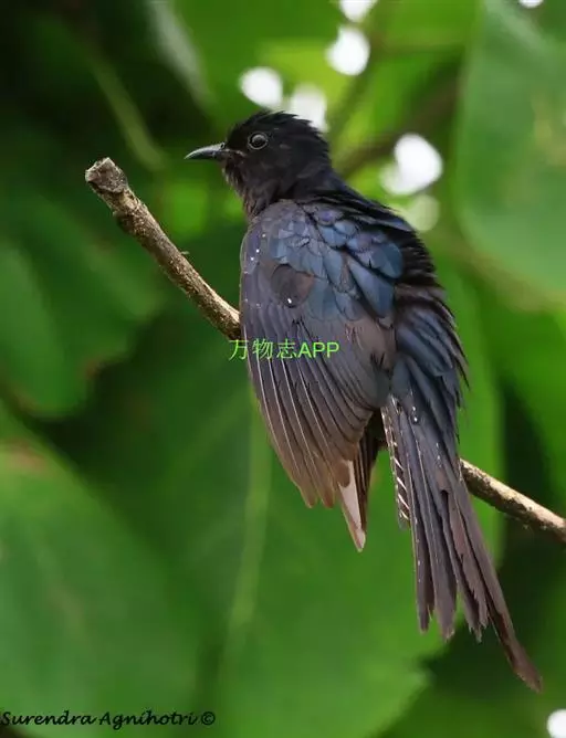 斑翅凤头鹃: 成鸟具羽冠,上体及头侧、翅、尾等黑色,具铁绿色亮辉,尾羽端部具白斑,两侧者形宽,…