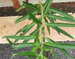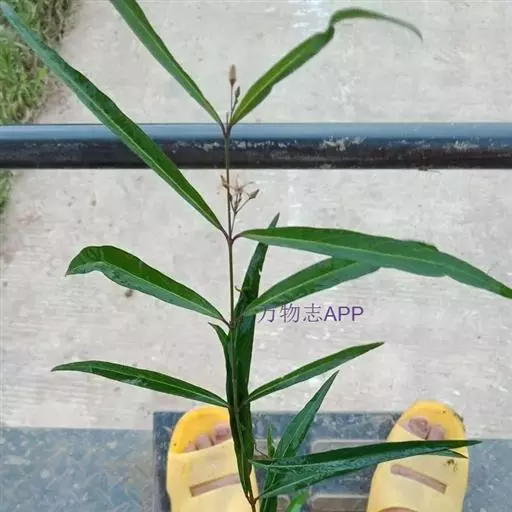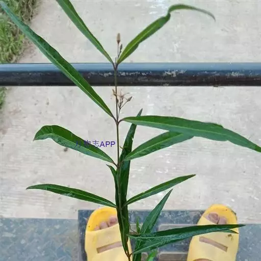 直立半灌木,高约1米,无毛,分枝或不分枝;须根纤细、节上丛生。叶对生,纸质,狭披针形,长6-13厘米,宽3-5毫米,两端渐尖;中脉在叶背显著,侧脉约6对;叶柄长约5毫米。