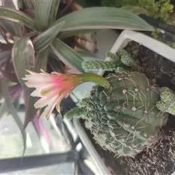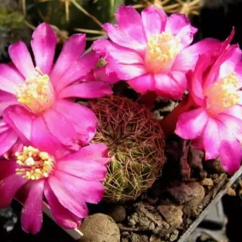 松霞是仙人掌科乳突球属的多年生肉质植物。单个球体小,呈圆筒状,暗绿色,疣状突起小,呈圆形,刺座无毛,…