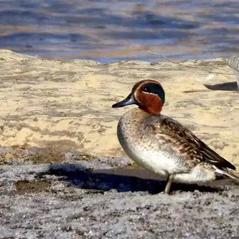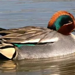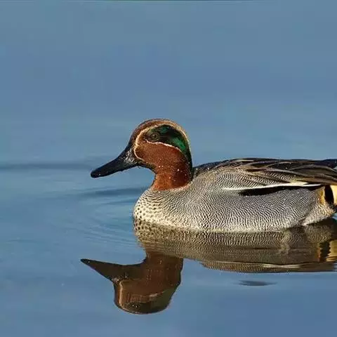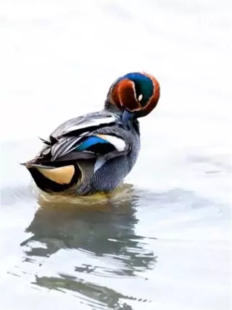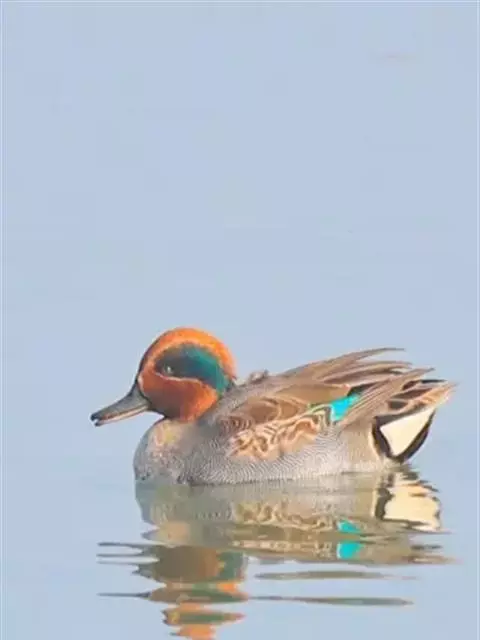 绿翅鸭是小型鸭类,体长37厘米,体重约0.5千克。嘴脚均为黑色。雄鸟头至颈部深栗色,…