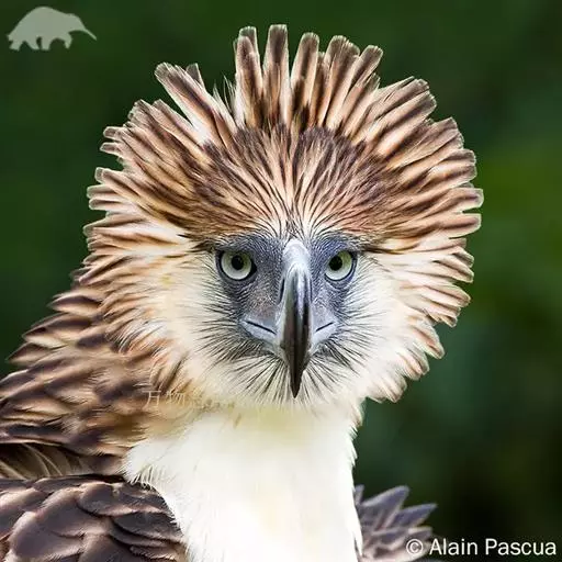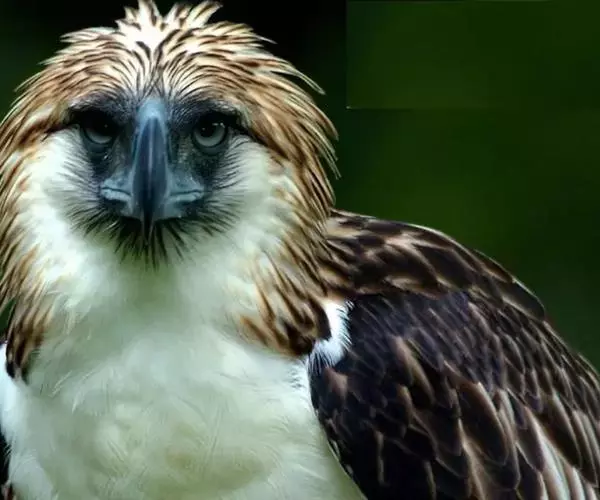 食猿雕(学名:Pithecophaga jefferyi):也称作菲律宾雕。体型大,体长91厘米,翼展200-250厘米,体重6500克,寿命30年。喙和爪均强健,上喙边端具弧形垂突,适于撕裂猎物吞食;基部具蜡膜或须状羽;翅强健,翅宽圆而钝,扇翅及翱翔飞行,扇翅节奏较隼科慢;跗跖部大多相对较长,约等于胫部长度,腿部羽毛一直覆盖接近至脚爪。雌鸟显著大于雄鸟。