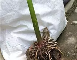 方法一 准备好兰盆及植料后,将兰株倒拿(根在上,叶在下)放于水龙头下以慢水冲洗,但水压切忌过强,以免伤兰根及叶子。用拇指和食指抓住兰头,小指抵住盆缘,用竹筷将根固定,当放入盆内时,尽量不要让根接触到盆壁。将豆粒大的混合石砾倒入盆底至三分之一处。然后倒入中粒植料至五分之四处,填实和尽量不要留下空间。将竹筷拔出,并摇实盆中植料。填实植料后,再用大粒植料埴入至距盆缘1.5厘米处。最后再倒入豆粒大植料,以将假鳞茎全部埋入土中为度,然后充分摇实。用压土工具轻压植料,并将表面弄平。种植完毕后,植料在盆中以中央稍高为好。