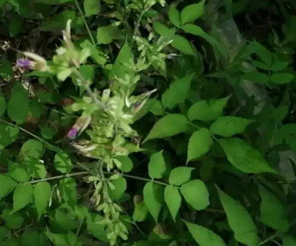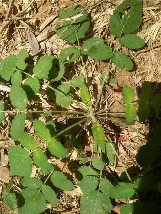 多年生草本;根肥厚,外表红赤色,切面淡黄色。茎粗大,高约1米,钝四棱形,具四槽,被下向长柔毛。叶为羽状复叶,长10-20厘米,有小叶(5)7片,顶生小叶卵圆状披针形,长4-7.5厘米,宽2-4.5厘米,先端渐尖或尾状渐尖,基部圆形或浅心形或稍偏斜,边缘具圆齿状锯齿或锯齿,草质,两面除脉上略被小疏柔毛外余部均无毛,侧脉5-6对,与中脉在上面平坦下面明显,上面绿色,下面淡绿色,侧生小叶较小,基部偏斜;叶柄长4-6厘米,腹凹背凸,被长柔毛。