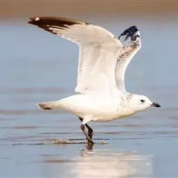 灰翅鸥,夏羽头、颈、腰、尾白色;肩、背和翅上覆羽鸽灰色。冬羽和夏羽相似,但头和颈具淡褐色纵纹,有时…