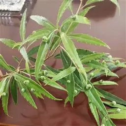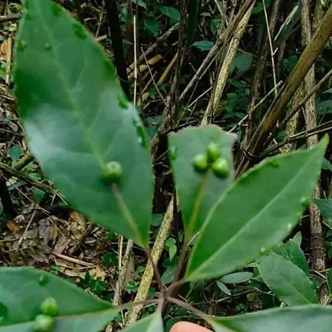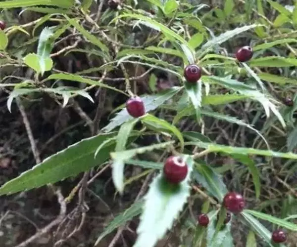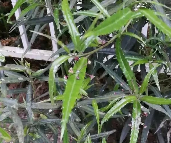 描述: 常绿灌木,高1-2米;树皮深灰色或淡灰褐色;幼枝纤细,紫绿色。叶革质、近于革质,稀厚纸质,线状披针形或披针形,长4-15厘米,宽4-20毫米,先端长渐尖,基部楔形或近于圆形,边缘具稀疏腺状锯齿,叶面深绿色,下面淡绿色,侧脉6-8对,在上面不显, 下面微显;叶柄长3-4厘米;托叶纤细。雄花4-5枚成伞形花序,生于叶面中脉中部或幼枝上段,花3-5数;花萼小,花瓣卵形,长2-3毫米,花梗长2-10毫米;雌花1-3枚生于叶面中脉中部,花梗极短;子房卵圆形,柱头3-5裂。果实具分核3-5枚,长圆形,直径5-7毫米,幼时绿色,成熟后黑色;果梗长1-2毫米。花期4-5月;果期8-10月。