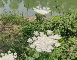 伞形花序三出,中间的伞辐长于两侧的伞辐;小总苞片3—7,倒披针形或宽线形,长0.7—3.5厘米,宽3—6毫米,全缘或疏生1—3齿;小伞形花序多花;雄花15—20;花柄长2毫米,萼齿卵状披针形,长1.2—1.8毫米,宽0.6—1毫米,顶部渐尖,中间有1脉;花瓣淡红色至紫红色,长2—2.5毫米,宽约1毫米,顶端内凹,基部渐窄;花丝长3—4毫米,花药长0.7—1毫米;性花3—5,近无柄,萼齿、花瓣与雄花同色、同形;花柱长于萼齿2倍,向外反曲。