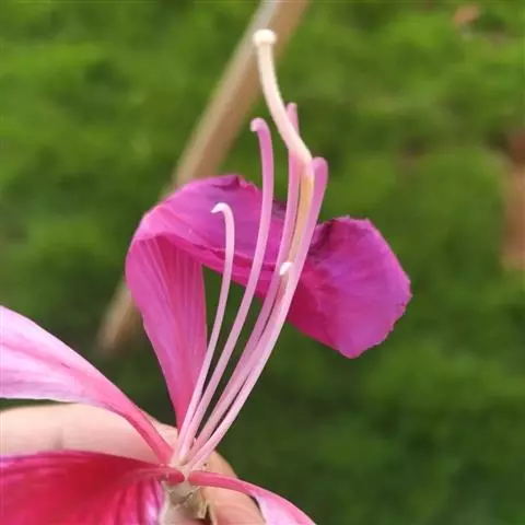 洋紫荆的花和叶长得十分有趣。它的花有五片花冠,四片对称地分裂两侧,一片翘起在上方,布满色调颇浓的彩斑,很像兰花的花舌,因此有人称它为“兰花树”。三色堇在南方被人叫做“蝴蝶花”,其实,这顶桂冠戴在豆科植物洋紫荆的头上,也是合适的。