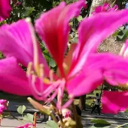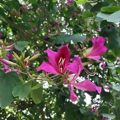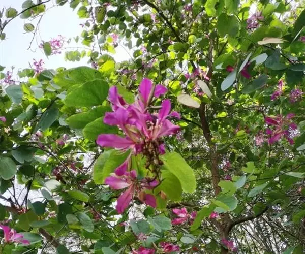 人们常以赞美之笔,描绘南国的鲜花。可是,洋紫荆——原名“羊蹄甲”的花,却常常被人所忽略,这大概是因为它既不是草本植物,又不是灌木盆栽,而是生长在乔木上的缘故?是因为年宵花市上,从来没有人摆卖这种花?是因为在广州,它不过是极为寻常的街道树?尽管如此,洋紫荆仍不失为南国一种极为出色的鲜花。站在紫荆树下,但见一树繁花,宛如千万彩蝶云集,好像走进了梦幻境界,也令人禁不住想起云南驰名四方的蝴蝶泉。