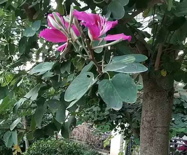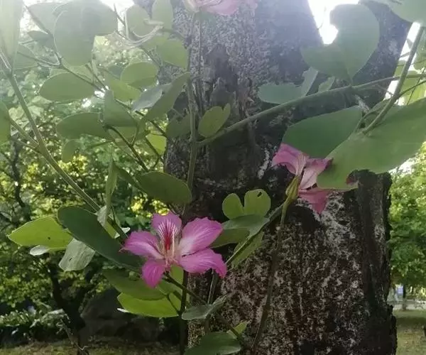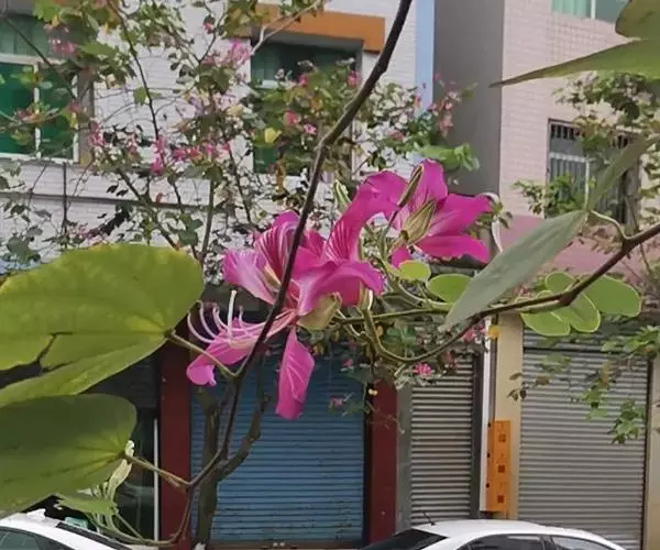 在高纬度地方,人们大概是看不到这种洋紫荆的。我有一个朋友,由于喜爱这种花树,特意起了个带“荆”字的名字,抗日战争时期,他北上延安参加革命,后来牺牲了。他的妹妹回南方省亲的时候,特意采了洋紫荆的几片叶子和花朵,夹在书里带回北方,好让孩子们知道“荆”字的来历,生命本应该这样地繁花似锦呵!