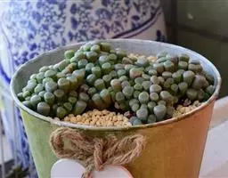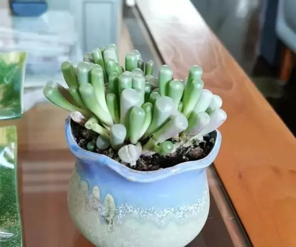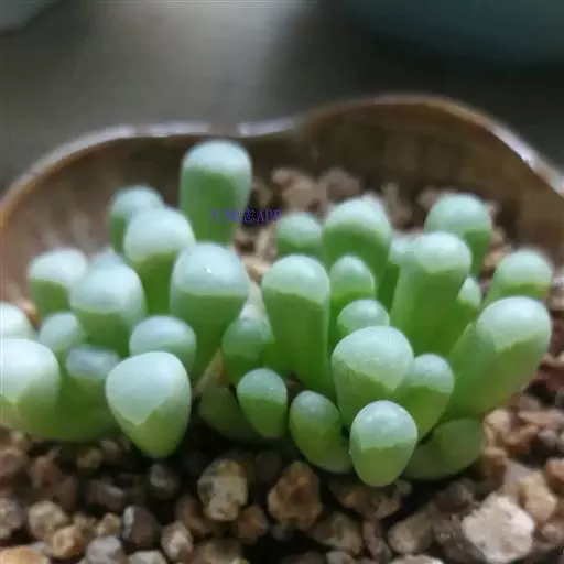 五十铃玉形态奇特,珠圆玉润,富有光泽,在欧美地区,人们都习惯称它“婴儿脚趾”,是室内盆栽的珍奇品种之一。