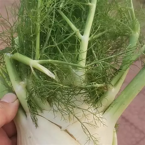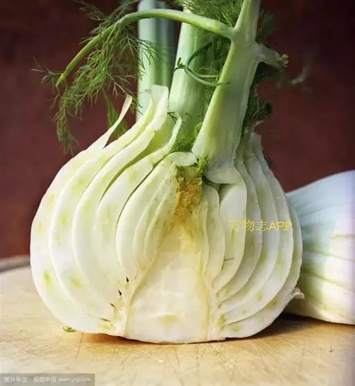球茎茴香是伞形花科茴香属的一个变种,为一年生草本植物,原产地中海沿岸及西亚,其茎的上部叶鞘膨大而形成的长扁球形的脆嫩球茎及嫩叶供食用,根和种子也可作香料和蔬菜,整株无废弃部分,球茎茴香含茴香醚、茴香酮、茴香醛等挥发油,富有辛香气味,并含胡萝卜素、维生素C和各种人类必需的氨基酸,营养价值较高。因它能促进胃肠蠕动和帮助消化,早在罗马时代,妇女们就知道食用茴香能抑制肥胖的发生。故它也是良好的减肥蔬菜。