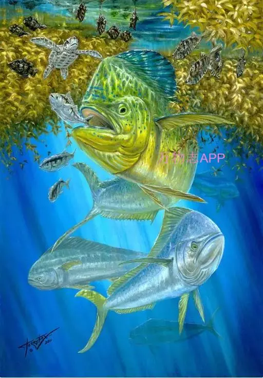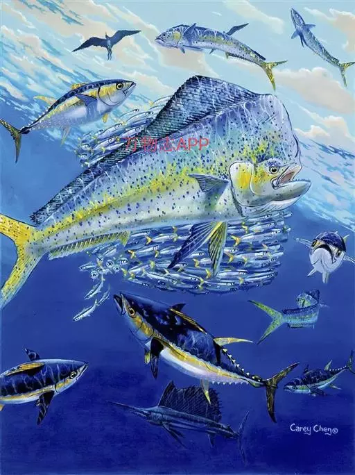 鲯鳅游动敏捷,色彩绚丽,自然成为许多游钓爱好者争相追逐的目标。多数海水鱼也有很美丽的体色,但和鲯鳅这份咄咄逼人的艳丽相比似乎显得相形见绌。尤其在繁殖季节,被捕后想要挣脱鱼线的鲯鳅不停挣扎和扭动,透过清澈的海水,浑身散发着金属质感的幻彩光芒。