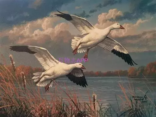 雪雁是鸭科雁属鸟类,雁属中体形大,个体重的鸟类。羽毛洁白,翼角黑色。飞行时双翼拍打用力,振翅频率高。…