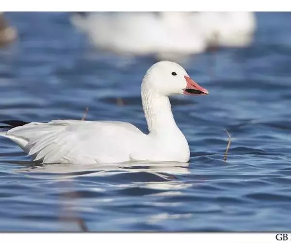 雪雁(学名:Anser caerulescens)是雁属中体形大,个体重的鸟类。羽毛洁白,翼角黑色。飞行时双翼拍打用力,振翅频率高。脖子较其他雁类略短长。腿位于身体的中心支点,行走自如。有扁平的喙,边缘锯齿状,有助于过滤食物。有迁徙的习性,迁飞距离也较远。喜群居,飞行时成有序的队列,有一字形、人字形等。为一夫一妻制,雌雄共同参与雏鸟的的养育。