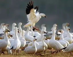 8月末,繁殖雪雁和它的子女们以及非繁殖雪雁聚集一堂,最多可达10000只,稍加停顿,就开始了飞往越冬区的征程。