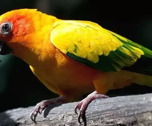 太阳锥尾鹦鹉(学名:Aratinga solstitialis)是典型的攀禽,鸟喙强劲有力,喙钩曲,上颌具有可活动关节,喙基部具有腊膜。肌肉质舌厚。脚短,强大,对趾型,两趾向前两趾向后,适合抓握和攀援生活。鹦鹉羽毛鸟体大部分为金黄色,头顶、脸颊两侧、下腹部、和背部下方都带有点桔色的色调。主要栖息于干旱,半落叶阔叶林和树木繁茂的热带稀树草原。食物为种子、浆果、水果、坚果、昆虫以及其幼虫等,通常成对活动,繁殖期聚小群,分布于巴西和圭亚那。