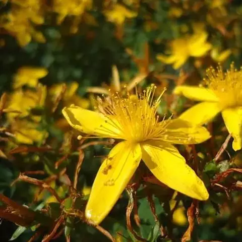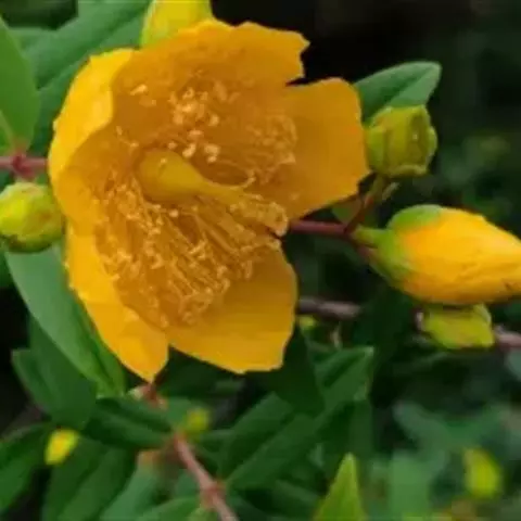 金丝桃 灌木,高0.5-1.3米,丛状或通常有疏生的开张枝条。
