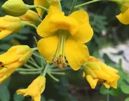集合成聚伞花序着生在枝顶,花色金黄,其呈束状纤细的雄蕊花丝也灿若金丝。