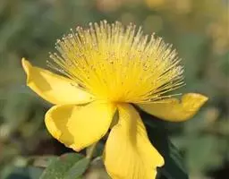 金丝桃 金丝桃是一种中草药,根茎叶花果均可入药,抗抑郁、镇静、抗菌消炎、创伤收敛,尤其是抗病毒作用突出,能抗DNA、RNA病毒,可用于艾滋病的治疗。以金丝桃提取的金丝桃素已经贵若黄金,应用于美容医疗。