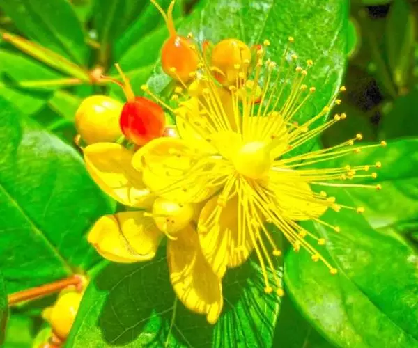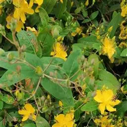 金丝桃果实:性味:甘。主治肺病,百日咳。