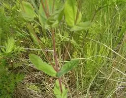 全草长约80cm,光滑无毛。根呈圆柱形,表面棕褐色,栓皮易成片状剥落,断面不整齐,中心可见极小的空洞。老茎较粗,圆柱形,直径4~6mm,表面浅棕褐色,可见对生叶痕,栓皮易成片状脱落。质脆、易折断,断面不整齐,中空明显。幼茎较细,直径1.5~3mm,表面较光滑,节间呈浅棕绿色,节部呈深棕绿色,断面中空。叶对生,略皱缩易破碎;完整叶片展形呈长椭圆形,全缘,上面绿色,下面灰绿色中脉明显突起,叶片可见透明腺点。气微香,味微苦。