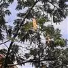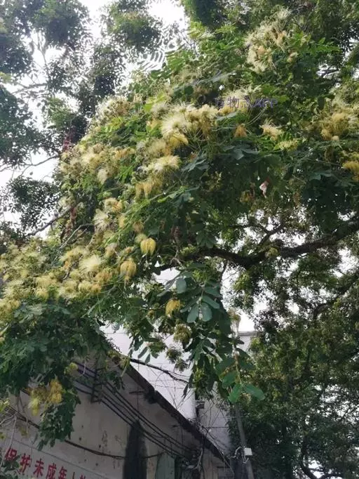 头状花序花时直径3-4厘米;总花梗通常长7-9厘米,1至数个聚生于叶腋;小花梗长3-5毫米;花芳香,花萼管状,长约4毫米,被微柔毛;花冠黄绿色,长7-8毫米,裂片三角状卵形;雄蕊白色或淡黄绿色。荚果带状,长15-28厘米,宽2.5-4.5厘米,扁平,麦秆色,光亮,无毛,常宿存于树上经久不落;种子4-12颗,椭圆形,长约1厘米,棕色。花期5-9月;果期10月至翌年5月。