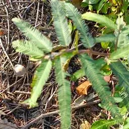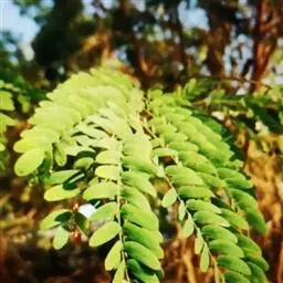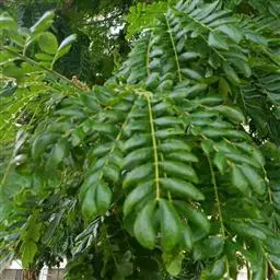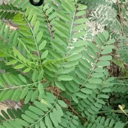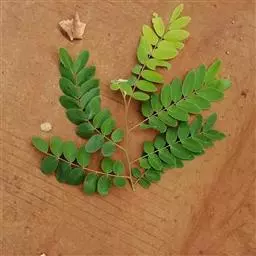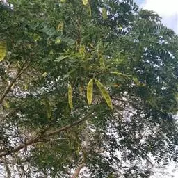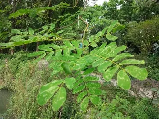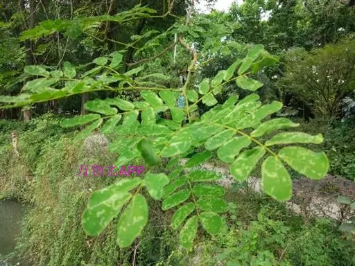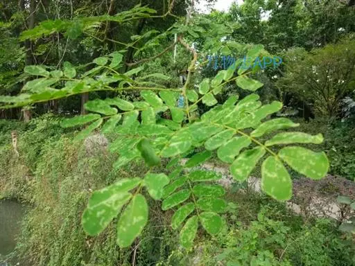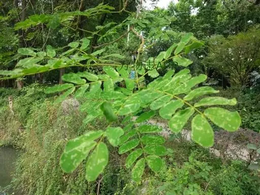 高8-12米;树皮粗糙;嫩枝密被短柔毛,老枝无毛。二回羽状复叶;总叶柄近基部及叶轴上羽片着生处均有腺体;叶轴被短柔毛或无毛;羽片2-4对,长6-15厘米;小叶4-8对,长椭圆形或略斜的长椭圆形,长2-4.5厘米,宽(0.9-)1.3-2厘米,先端圆钝或微凹,两面无毛或下面疏被微柔毛,中脉略偏于上缘。