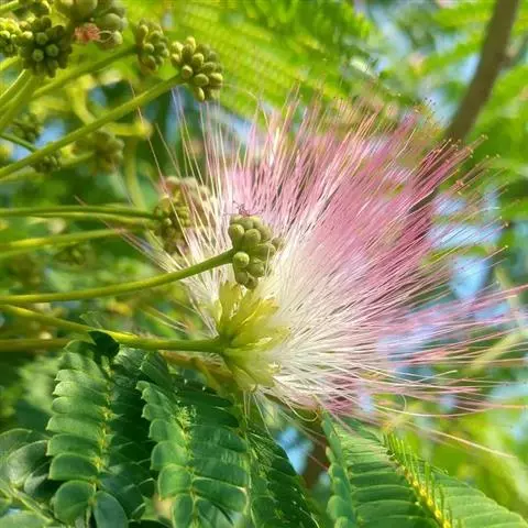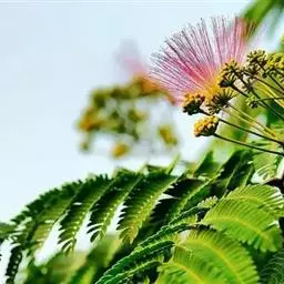 阔荚合欢(学名:Albizia lebbeck (Linn.) Benth.)是豆科合欢属植物,高8-12米;树皮粗糙;嫩枝密被短柔毛,老枝无毛。二回羽状复叶;总叶柄近基部及叶轴上羽片着生处均有腺体。头状花序花时直径3-4厘米;总花梗通常长7-9厘米。荚果带状,扁平,麦秆色,光亮,无毛,常宿存于树上经久不落;种子4-12颗,椭圆形,。花期5-9月;果期10月至翌年5月。