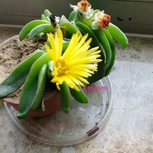 照波,番杏科多肉植物、此种生长较快,栽培容易,细长的浓绿色叶3厘米左右,开黄色花。…