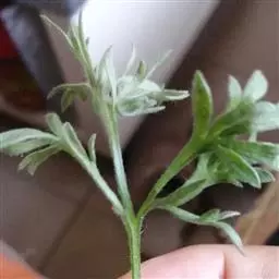 灰霉病病苗色浅,叶片、叶柄发病呈灰白色,水渍状,组织软化至腐烂,高湿时表面生有灰霉。幼茎多在叶柄基部初生不规则水浸斑,很快变软腐烂,缢缩或折倒,最后病苗腐烂枯萎病死。