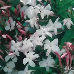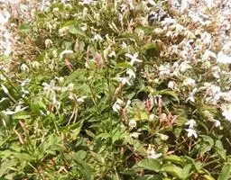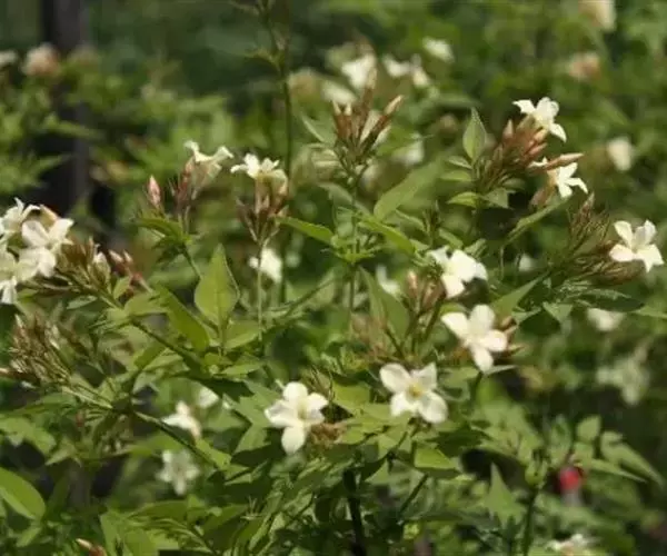 素方花(学名:Jasminum officinale L.)是木犀科素馨属植物。攀援灌木,高0.4-5米。小枝具棱或沟,无毛,稀被微柔毛。叶对生,羽状深裂或羽 状复叶,叶片和小叶片两面无毛或疏被短柔毛;顶生小叶片卵形、狭卵形或卵状披针形至狭椭圆形,果球形或椭圆形,成熟时由暗红色变为紫色。花期5-8月,果期9月。