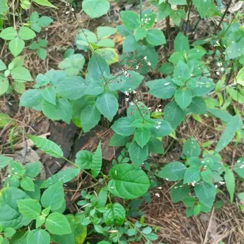 露珠草(云南种子植物名录)牛泷草(中国高等植物图鉴),心叶露珠草(台湾植物志) ,别名:水珠草,拉丁文名:Circaea lutetiana L.柳叶菜科、露珠草属植株高15-80厘米;根状茎上不具块茎;茎无毛,稀疏生曲柔毛。叶狭卵形、阔卵形至矩圆状卵形,基部圆形至近心形,稀阔楔形,先端短渐尖至长渐尖,边缘具锯齿。单总状花序或基部具分枝;花梗与花序轴垂直,被腺毛,基部无小苞片。梨形至近球形,基部通常不对称地渐狭至果梗,果上具明显纵沟;成熟果实连果梗长5.3-8.5毫米。花期6-8 (-9)月,果期7-9月。